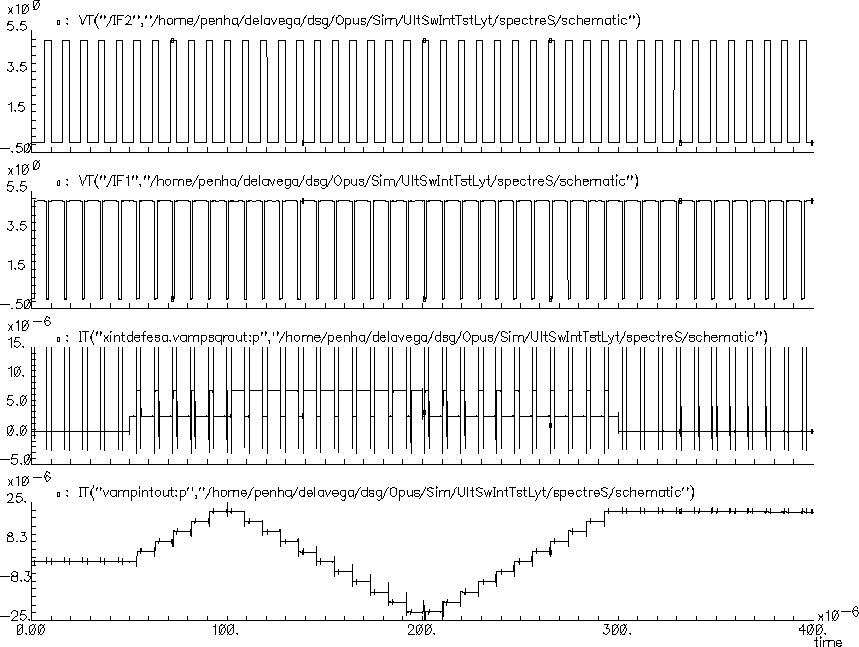 Sinais de controle (IF2 e IF1), saída do integrador e cópia da memória de saída
